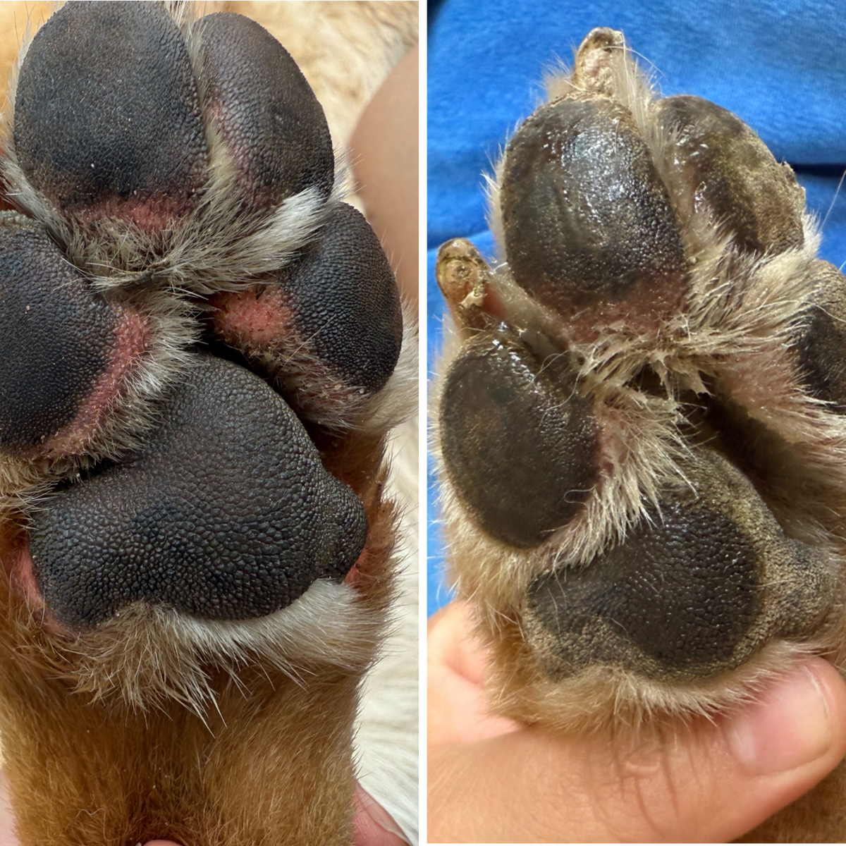 My poor Goldie had such sore paws with the wet and damp weather. After a few days of application, he was back to trotting along without a care in the world.