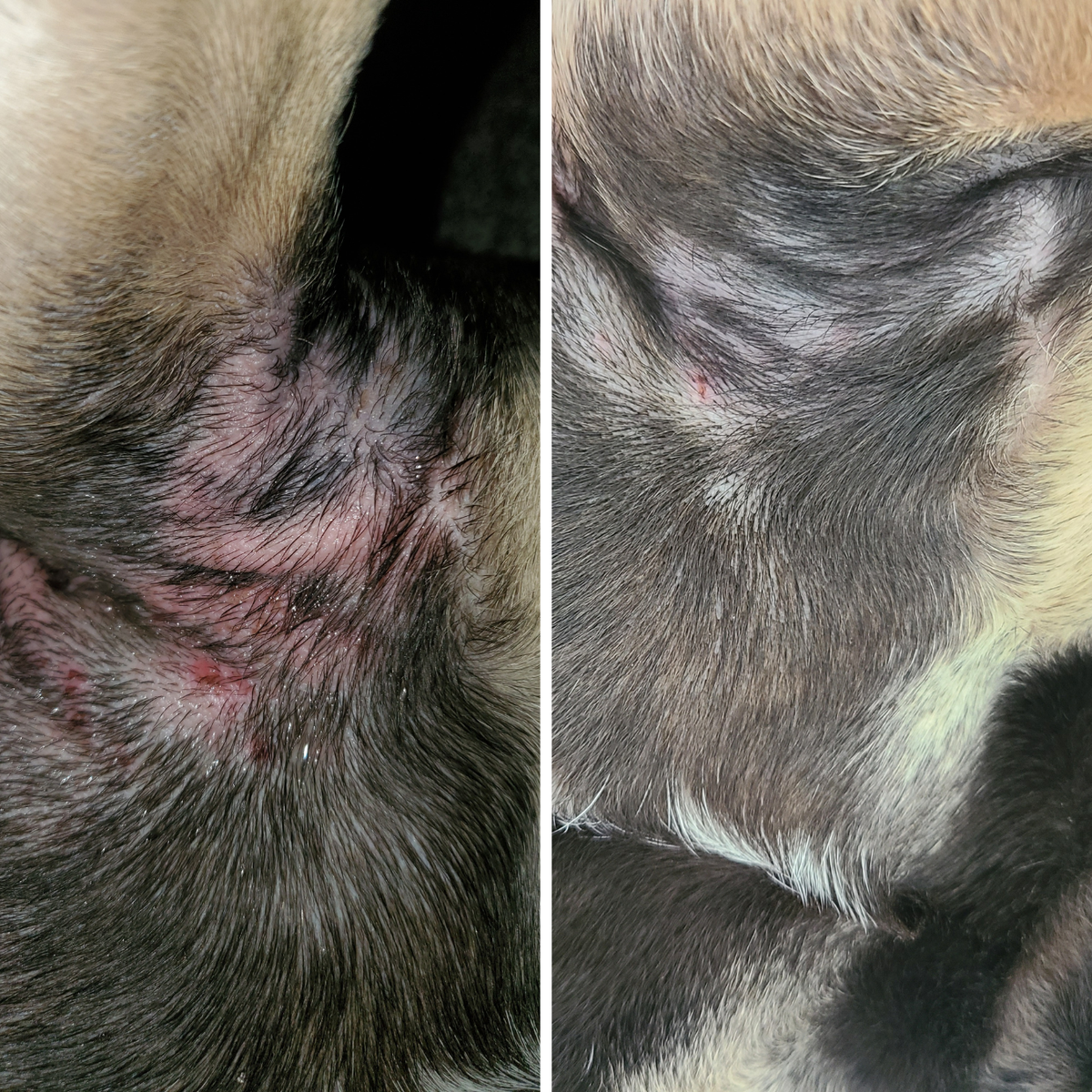 I've tried all sorts of things to try to sort out my dog's skin issues but nothing seemed to help. But the difference when I used the gel was great and within a couple of weeks his fur was growing back.